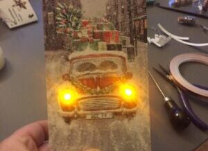 Vi laver julekort med lys i. Du tegner selv kortet – eller snyder og bruger et rigtigt julekort.